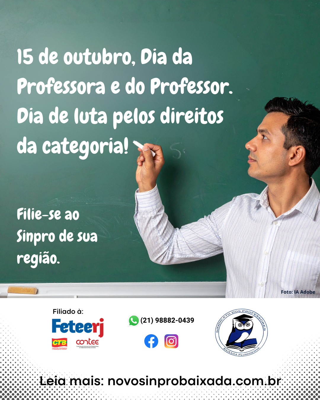 Conclamamos professoras e professores, neste 15 de outubro, a participarem dessa luta e a se filiarem ao Sinpro Baixada Fluminense – contate nosso whatsapp: (21) 98882-0439.