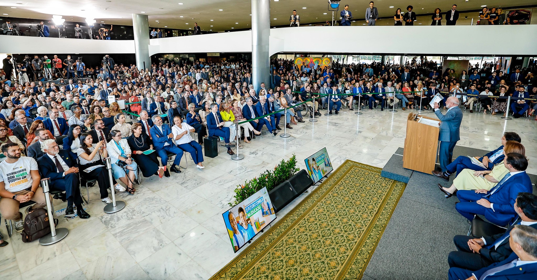 O presidente da República, Luiz Inácio Lula da Silva, sancionou dia 14/04, em cerimônia no Palácio do Planalto, o novo Plano Nacional de Educação (PNE), que prevê a ampliação do investimento público em educação para 7,5% do PIB do país no prazo de sete anos, com meta de alcançar 10% em uma década (foto: Ricardo Stuckert/Presidência)